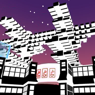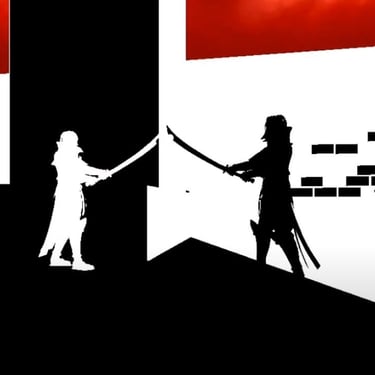 "Samurai birds hide, seek, and strike in this stylish local multiplayer stealth-game where the two-color art style lets you disappear perfectly into your environment."
